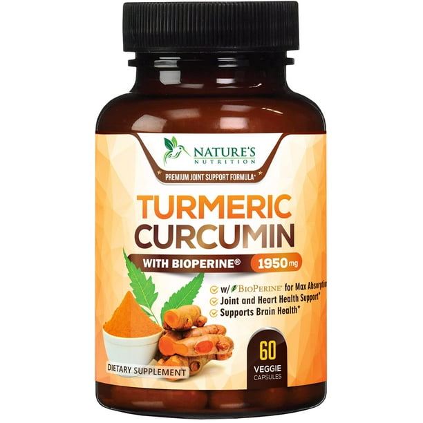 Nature's Nutrition Turmeric Curcumin Max Potency 95% Curcuminoids 1950mg with Bioperine Black Pepper for Best Absorption, Anti-Inflammatory Joint ...